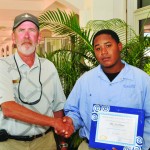 The Most Recognised Employees by Guests were Shane Sutton of Food and Beverage at Café Mediterraneo and Vincent (Sam) Hodge, Bar Tender at Food and Beverage. They each received US$50 and a framed certificate.
