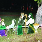 At North Hill, children enjoy night-time games on the basketball court with Christmas lights and other decorations. The lighted and decorated areas include the entrance to the playing field, Zion Methodist Church and garden fences as well as under a cluster of trees where there are also scenes of the nativity.