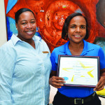 Claudia Gumbs, of Food & Beverage at Café Mediterraneo, was the Most Recognised Employee by Guests. She received US$50.00 and a framed certificate.