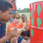 Students were told during Omololu Time (Friday morning assembly) that they would need to design artwork to paint on the barrel. They then returned to their classrooms and worked to create an inspirational, unique, and colorful design with the help of their teachers. They then immediately got to work making their design a reality.