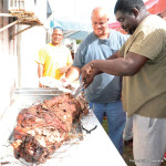 In her private capacity, the Elected Representative for District 2, and Minister of Home Affairs, Mrs. Cora Richardson-Hodge, donned an apron and joined in serving patrons at one of the main food stalls.