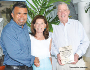 Mr. Carty took the opportunity to present a plaque featuring Anguilla native stone as a parting gift to the Hickoxes on behalf of the staff. The inscription read: “With our boundless appreciation, we Julucans, in recognition of Mr. Charles and Mrs. Linda Hickox, thank you for your unwavering dedication and commitment to Cap Juluca, the staff and Anguilla over the last thirty years. Your patience, generosity and selfless contribution will forever remain immortal in our hearts. We thank you. Creating experiences beyond expectations 1987 -2017.”