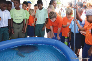Students from the public and private schools enjoyed an exciting day on Wednesday, May 24, as they got to interact with a quantity of the island’s greenback turtles. It was an annual event whereby the Department of Marine and Fisheries invite members of the public to witness the tagging of the turtles.