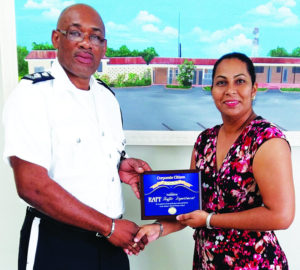 The award was presented by Tr. Sabrina Boodram on behalf of the Principal of the school Tr. Tracelyn Hamilton to Insp. Randolph Yearwood who has overall responsibility for the Traffic Department. In accepting the award he expressed the RAPF gratitude and pledge its commitment to assisting the primary schools across the island in whatever way that the organization can.