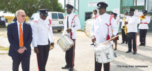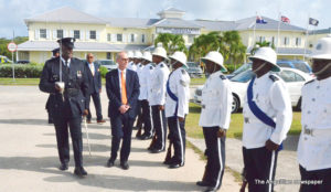 Following the parliamentary proceedings, Governor Foy inspected a Police Guard of Honour, and the Police/Community Band, outside the House of Assembly and the Court House. He was accompanied by Chief Minister Banks, Commissioner of Police (Mr. Paul Morrison) and the Commanding Officer, Sergeant Brian Best.