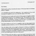Prime Minister May had written to Khorey in response to his letter, of 3rd October 2017, requesting assistance for Anguilla from the British Government after the passage of Hurricane Irma. Khorey, who is a past President of his school’s Student’s Council – and is known for his precocious and outgoing personality – wrote the letter to the Prime Minister because he felt that the British Government should do more to help Anguilla.