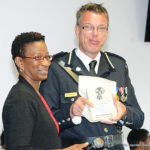 The Commissioner was presented with a plaque by Mrs. Sonia Skellekie, a former police officer now an employee at the Department of Social Development. She presented the award on behalf of the Church of God (Holiness) and in recognition of the police force’s 46 years of dedicated service to Anguilla.