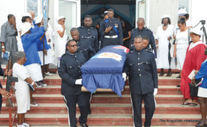 “As a mark of respect, flags were flown at half-mast yesterday and today; and today a National Funeral is being held in recognition of her memory; a Police Guard of Honour is in attendance; and a contingent of uniformed officers will bear the body in and out of the church and at the gravesite. The casket is draped with the National Flag. This collective demonstration of national respect accorded to the late Daisy ‘Wong’ Richardson, will bring much comfort to the grieving family and friends.