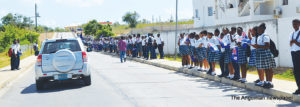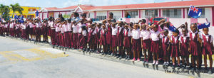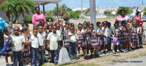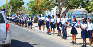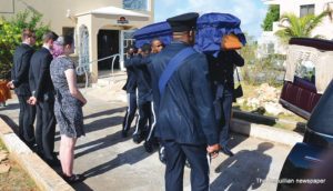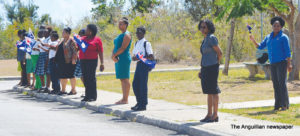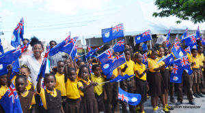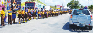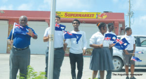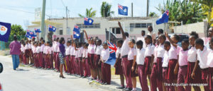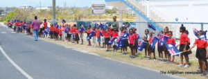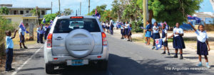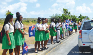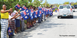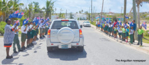 Scores of schoolchildren lined the route of the motorcade, near their schools, waving flags and singing national songs as the Two Sons Funeral Home Hearse, carrying Sir Emile’s body, and other vehicles with his family members and members of the Royal Anguilla Police Force, drove by.