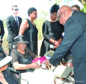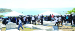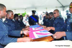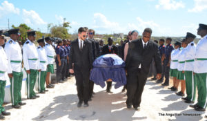 The climaxing events at the cemetery were the presentation of the Official National Flag to Lady Josephine Gumbs by the Honourable Chief Minister, Mr. Victor Banks, after it had draped Sir Emile’s casket and was folded by the Police Pallbearers; a gun salute of three rounds by the Police Firing Party; the blowing of the bugle; and the interment performed by the Rev. Dr. Wycherley Gumbs, Superintendent of the Anguilla Methodist Circuit, and Rev. Wilmoth Hodge.