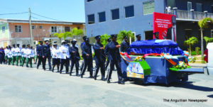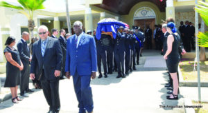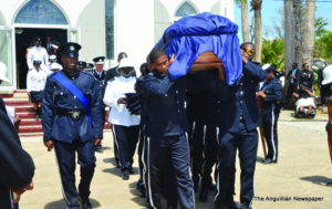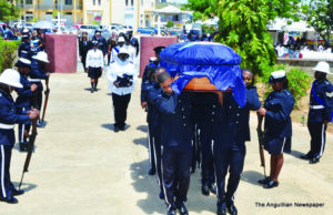 From the Court House, on Friday, 25th May, the impressive funeral procession wended its way to St. Mary’s Anglican Church with Sir Emile’s body transported by carriage. The procession included uniformed personnel from the Royal Anguilla Police Force, the Police/Community Band, the Cadet Corps, Immigration, Customs, Her Majesty’s Prison, the Fire and Rescue Services, and the Boys Brigade Band.