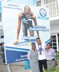 Parliamentary Secretary, Sports and Youth Affairs, Mr. Cardigan Connor, joined in congratulating Zharnel for winning the European Championships and presented him with a glass plaque from the Department of Sports. The inscription read: “To Zharnel Hughes in recognition of your accomplishments as the 100 meter and 4×100 2018 European Athletics Champion. Congratulations. Keep making us proud.”