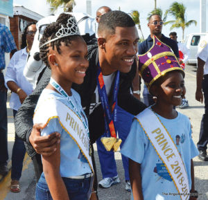 The young athlete, who has already carved out a comfortable and highly respected place for himself in world athletics, won the 100 meter and the 4×100 meter gold medals while competing for Great Britain. “It was an awesome achievement,” he told The Anguillian newspaper when he arrived and was welcomed at the Blowing Point Ferry Terminal. “It was something that was set out for me earlier in the year and to see that it actually came to pass was one of those real moments I was working towards. I was really grateful that I was able to accomplish my goals”