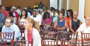 Director of Social Security, Mr. Timothy Hodge, who earlier delivered an interesting poem on Hurricane Irma, was the first person to respond to Mr. Collymore’s lecture during the period for questions, comments and answers. In thanking the lecturer for his presentation Mr. Hodge, a doctoral student at the University of the Virgin Islands, referred to a situation in St. Thomas and St. Croix where, following Hurricanes Irma and Maria, patients had to be moved to Puerto Rico and later to the United States mainland.