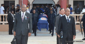The tribute section of the National Funeral was conducted by Pathfinder Major, Mrs. Maria Webster. Among those who paid tribute to the late Speaker were close friends – of during his boyhood days -including Sutcliffe Hodge, Ophelia Richardson, Alkins Rogers, and former parliamentary colleague and friend, Edison Baird.
