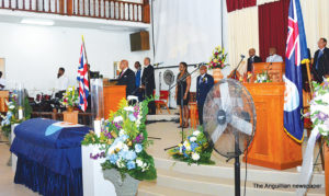 Following the National Anthem and the National Song, the rest of the National Funeral was taken over by the Minister of the Anguilla District of the Seventh-day Adventist Church, Pastor Trent Berg, who gave the welcome remarks and later delivered the sermon. He took the opportunity to speak about his pastoral knowledge of the Speaker, and joined in commending him for his quality of life, civic and spiritual characteristics and the example he had set for others.