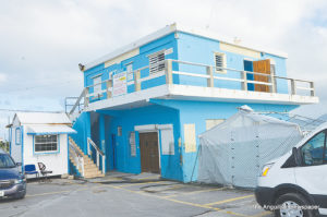 The privately-owned building, well north of the Blowing Point jetties, has been leased by the Government of Anguilla until a permanent structure, funded under the UK grant programme, can be built. The two-storey building and the additions were commissioned as the temporary passenger terminal on Christmas Day. Prior to that tents, and the existing old building down at the edge of the port, were used as makeshift passenger services.
