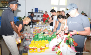 Referring to the large stacks of grocery items, valued at several thousand US dollars, Ms. Paoli said: “This is a corporate services responsibility project for a charitable organisation that was in need of assistance. We identified the AXA Cares Food Bank, and a representative from that organisation will be here this morning to talk about the Food Bank. After that members of the group will break up into small teams. They will first participate in a small quiz, a final interactive session, and then they would be tasked with filling up grocery bags with the food staples we have here, and were identified by the AXA Cares Food Bank for the families registered by that organisation. This is a considerable contribution that BriovaRx is making not only to the AXA Cares Food Bank, but to Anguilla in general as a way of giving back to the community. This is an incentive programme for the BriovaRx employees for a great year of performance. While they are here enjoying the beauty, splendour, and all the activities in Anguilla, they also recognise that the island has gone through a difficult period, and they wanted to do something to give back to the community.”
