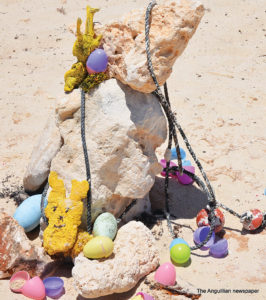 “This time it is an Easter religious display on the beach,” he told The Anguillian newspaper during his farewell visit – until he returns to the island again. “I did Santa Claus and the reindeer for Christmas and people thought that was fantastic. I also did a Valentine display and then I had one that represented flowers. I also did a display for St. Patrick’s Day but now I am doing a religious one. It is with Christ rising and things like that. There are also a couple of Easter bunnies and Easter eggs.”