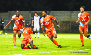 Kyle Lake-Bryan #17 celebrates scoring 1st goal for Anguilla