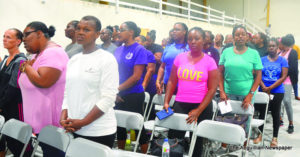 Teachers’ Professional Development Day, which was organized by the Anguilla Teachers’ Union, opened with a Call to Order and prayer by Teacher Cherise Gumbs. Teacher Cynthia Gumbs then led the gathering in a session of inspirational praise and worship songs, backed up by the musical accompaniment of Teacher Lennox Vanterpool on the keyboard, Teacher Michael “Dumper” Martin on the steel pans and Teacher Trevis Rouse on the drums.