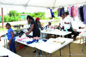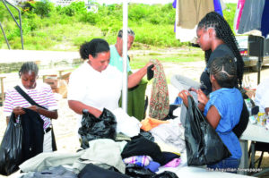 It was a busy tent event with one section distributing an assortment of cooked food; a second section donating clothes of all sizes, styles and colours; and a third section providing seats for the some two hundred persons in attendance.
