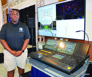 We first met with nineteen year old Jarian Fleming whose business name is Titanium Audio-Visual. He explained: “I am a Lighting Designer. I design and programme lighting effects for stage shows, concerts, carnivals and any musical event. I specialize in creating 3-D renderings. It is necessary that I make a visit to the event venue beforehand to plan correctly for my displays. I have done work for many local shows — as well as for carnivals further afield like in St. Maarten, Dominica, St. Croix, and St. Thomas.” (Jarian is the son of Mr. Gilbert (GAF) Fleming of Titanium Sounds.)