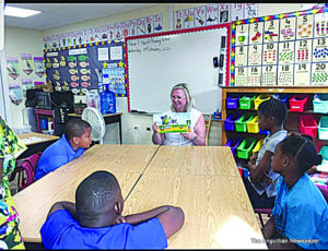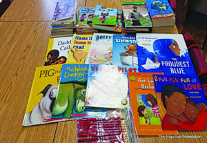 Students at the Adrian T. Hazell Primary school are grateful for a donation of reading books, pencils and 2 sets of playing cards from returning guests to the
