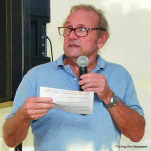 The consultative meeting was held on Friday evening, October 9, at Roy’s Restaurant where a mammoth crowd had assembled. It was a joint event by the Sandy Ground Community and the Government of Anguilla. The chairperson was Ms. Pat Hodge, a Sandy Ground resident and President of the Sandy Ground Committee. Those who joined her, as the main speakers against the yacht marina, were: Mr. Richard West, the well-known owner and captain of the yacht, Charm 3 – former Marine Surveyor for British ships registry in Anguilla for 20 years, and former Lloyd’s Global Marine Insurance Surveyor for Heavy Lift and Extreme Risk Cargos for 25 years; Mr. Rommel Hughes, a Civil Engineer; Mr. Edison Baird, a former politician and community activist; Mr. Ed Carty a deep-sea fisherman; and Mr. David Carty, an environmental advocate, historian and professional boat-builder in North Hill, overlooking Sandy Ground.