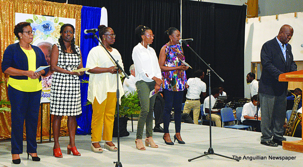 There were also brief remarks by Mr. Stanley Reid, the Chancellor’s Representative, UWI Open Campus Council and former President of the UWI Alumni Association Anguilla Chapter; the song “Still” by the Department of Education; brief remarks by the President of the Anguilla Teachers’ Union, Ms. Cherise Gumbs; songs “As the Deer Panteth” by past and present teachers; “Here I am , Lord”, by former colleagues; “You raise me Up” by the Class of Seventy Something’; songs by past student, Mr. Evan Webster; and the Class of 1995; a video collage by past Colleagues; and a selection by Roots Bingi.
