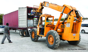 A forty-foot container with food items, water and other supplies, donated by businesses and individuals, was shipped from Anguilla this week. The container was loaded up on Saturday, April 17, during a meeting at the back courtyard of The Valley Police Headquarters. Those in attendance included members of the Anguilla-St. Vincent Association; Premier Dr. Ellis Lorenzo Webster; Minister of Home Affairs, Mr. Kenneth Hodge; Minister of Education and Social Development, Ms. Dee-Ann Kentish-Rogers; and Parliamentary Secretary, Tourism and Economic Development, Mrs. Quincia Gumbs-Marie.