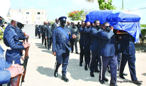There, the Official National Flag, which covered the mahogany casket, was presented to Mrs. Hughes on behalf of the Government and people of Anguilla by Sgt. Delvin Fleming. A three-volume gun salute, by a firing party from the Royal Anguilla Police Force, concluded the Official Funeral for the Honourable Hubert Benjamin Hughes, who passed away at the age of 87. He retired from active politics in 2015, a journey he began in 1961 when he returned to his homeland from his sojourn in the United Kingdom.