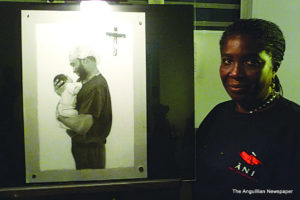 Meredith Gumbs, now a year into the academy, did a charcoal drawing inspired by a picture which her son sent her from a humanitarian trip he had attended in the Philippines. The piece is entitled “Saviour of Little Angels II.” It is of a man [her son] gently cradling a small child. She said, “When I saw the picture I fell in love with it because, as you can see, it’s full of emotion and I thought I would paint it and give it to him as a birthday gift. So I did so and he was totally amazed by it. He couldn’t believe it. He was so impressed with the work. But I decided to do a second one, as you would notice this says part 2. The reason why I’m doing it is because an art gallery in Oklahoma is going to take some of the art and they wanted one that deals with humanitarianism,” she said. “So because it was a humanitarian trip they went on I decided to do it over and send it off to Oklahoma for the gallery.”