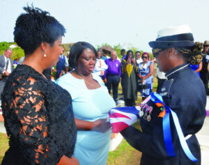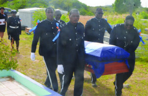 The casket was draped with the Anguilla national flag, which was folded in military fashion and presented to Frank’s daughter, Staria, prior to his burial. A gun salute by members of the Royal Anguilla Police Force was also observed in Frank’s honour at the Sandy Hill cemetery.
